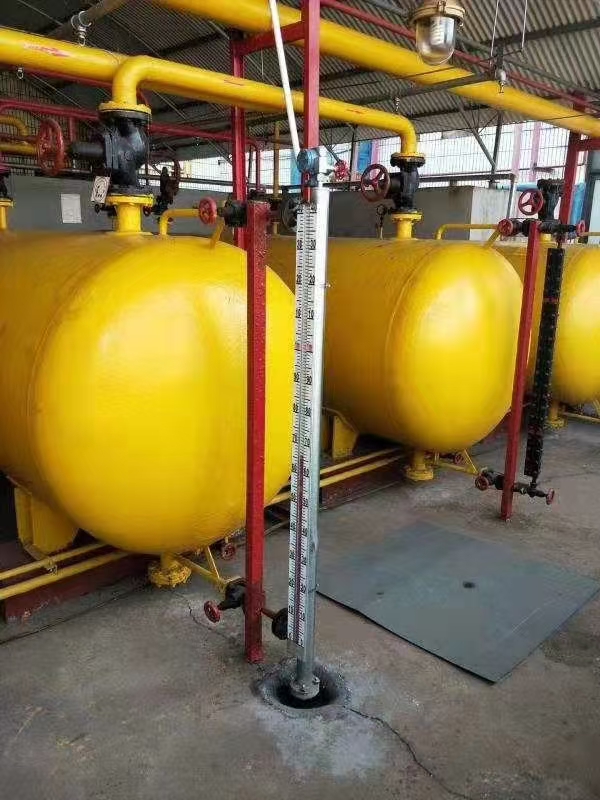 4、有可能测量的介质是一种易汽化的介质,当测量工况稳定时被测介质的气相和液相相互转化达到平衡,这时的液位测量值是正常的。但从储罐内抽出液体时,液面上部空间增大,气相压力降低会有部分液体汽化而产生大量气泡,小气泡上升过程中聚变成大气泡进入到磁翻板液位计的测量导管内,就可能形成一个迅速上升的气泡,气泡在上升过程中遇到浮子从浮子周围通过而使浮子上升速度过快,与测量导管外部的磁翻柱突然失去磁吸作用,就产生了“乱磁”现象,进而导致翻柱出现红白紊乱指示液位混乱现象。