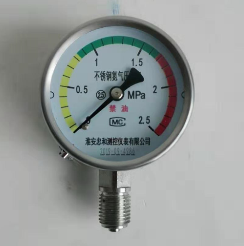 压力表在出厂前都是经过生产厂家检测合格后出厂的,由于压力表作为现场压力值测量显示的压力仪表作为压力检测的一部分,一般在安装前应当进行检定合格后再投入使用,并用标签注明下次检定日期贴在压力表表壳上面,并且压力表检定后加装铅封以保证没有遭到人为干预正常使用。通常为了保证压力表读数显示清晰指示,在刻度盘上划出指示工作压力的黄绿红线或者刻度标示。