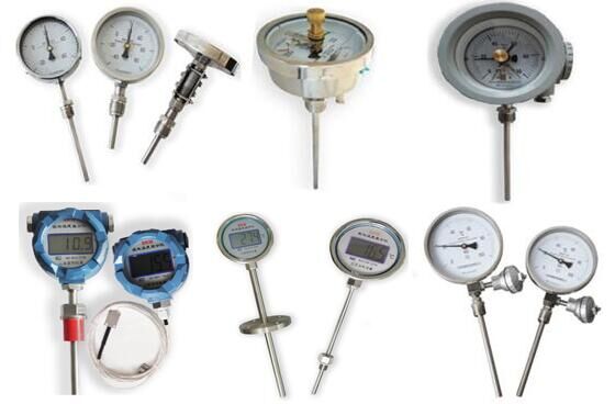双金属温度计是一种测量中低温度的现场检测仪表,是基于绕制成环性弯曲的双金属片组成,其中一端固定,另一端受热便可带动指针旋转,标度盘上便可指出所测量的介质温度。一般双金属温度计被用于低温就地测量指示温度,而热电阻与热电偶被用于中低温或者中高温测量并输出信号进入控制系统监控。