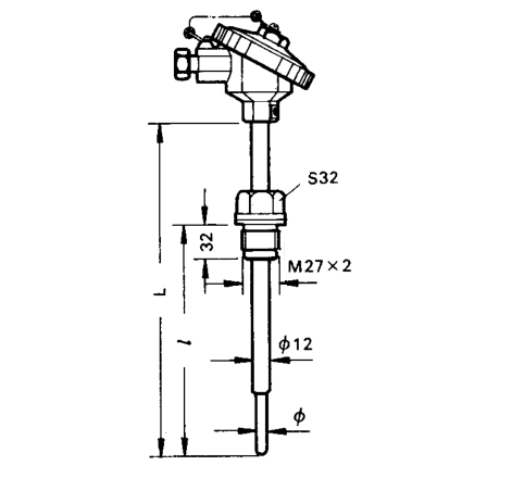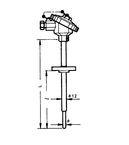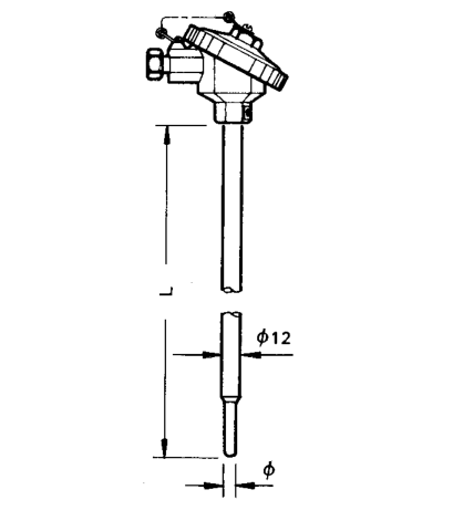 | 型号 | 分度号 | 测温范围℃ | 精度等级 | 热响应时间τ0.5s | 长度L(mm) | 接线盒形式 |